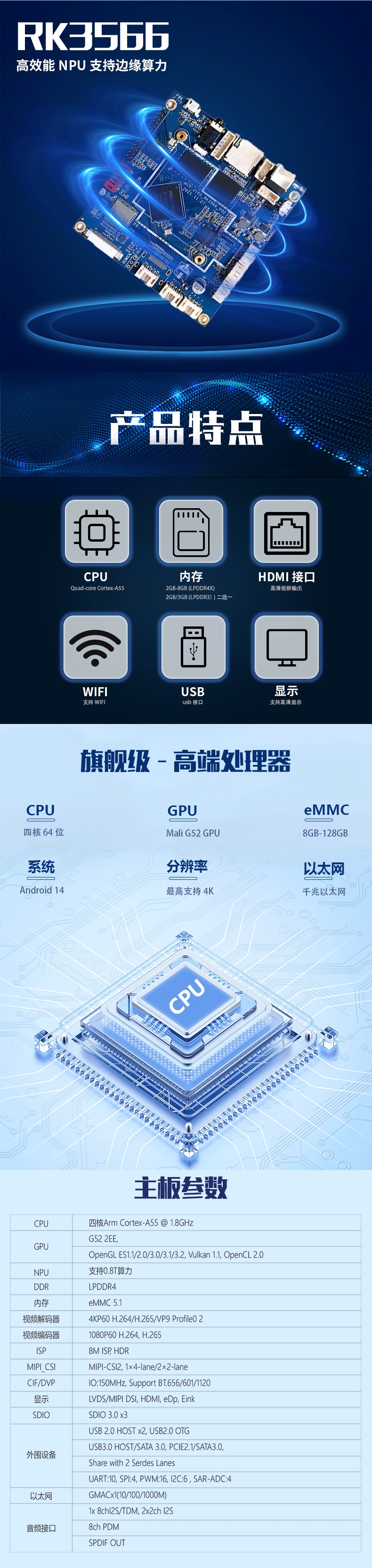 四核64位Cortex-A55 处理器